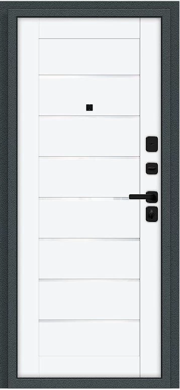 Надежная входная Дверь Браво Техно/SBlack Старк антрацит/White Silk премиум класса по цене 35 885 руб. Большая толщина стали защитит от проникновения в ваш дом, квартиру или коттедж. Используется очень качественная фурнитура: замки, цилиндры, ручки, защелки. Покрытие и отделка двери изготовлено под внимательным контролем производителя. Дверь имеет долгий срок службы и гарантию.