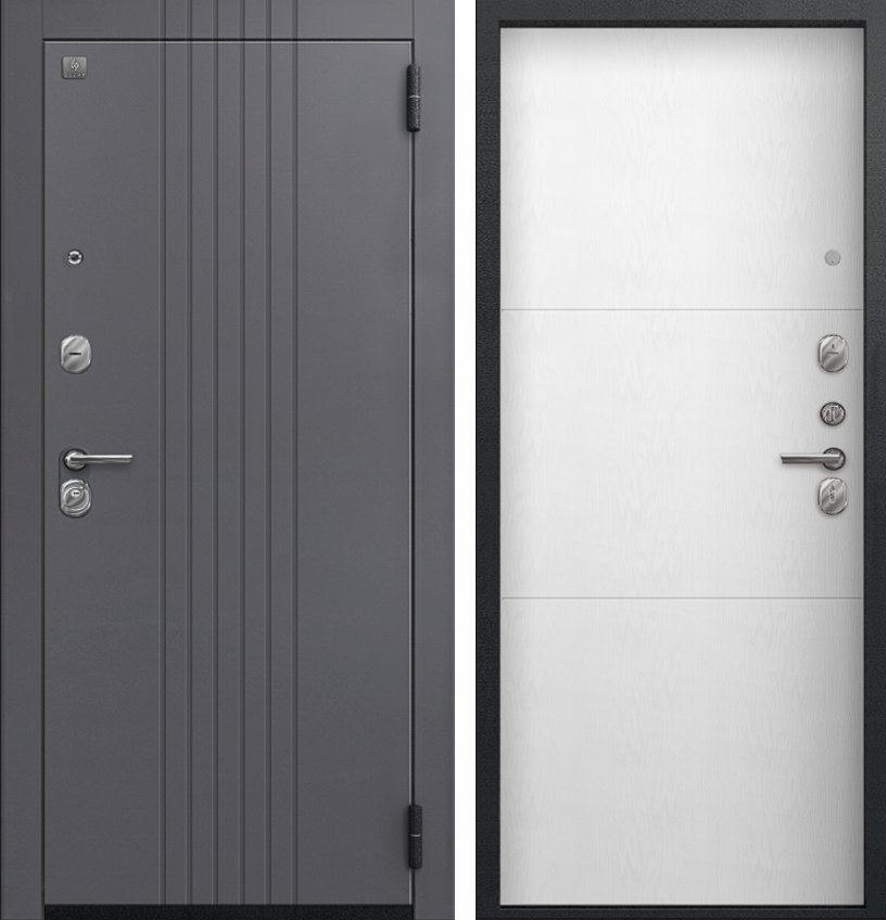 Надежная входная Дверь A-12 кашемир графит - софт ясень белый премиум класса по цене 38 135 руб. Большая толщина стали защитит от проникновения в ваш дом, квартиру или коттедж. Используется очень качественная фурнитура: замки, цилиндры, ручки, защелки. Покрытие и отделка двери изготовлено под внимательным контролем производителя. Дверь имеет долгий срок службы и гарантию.